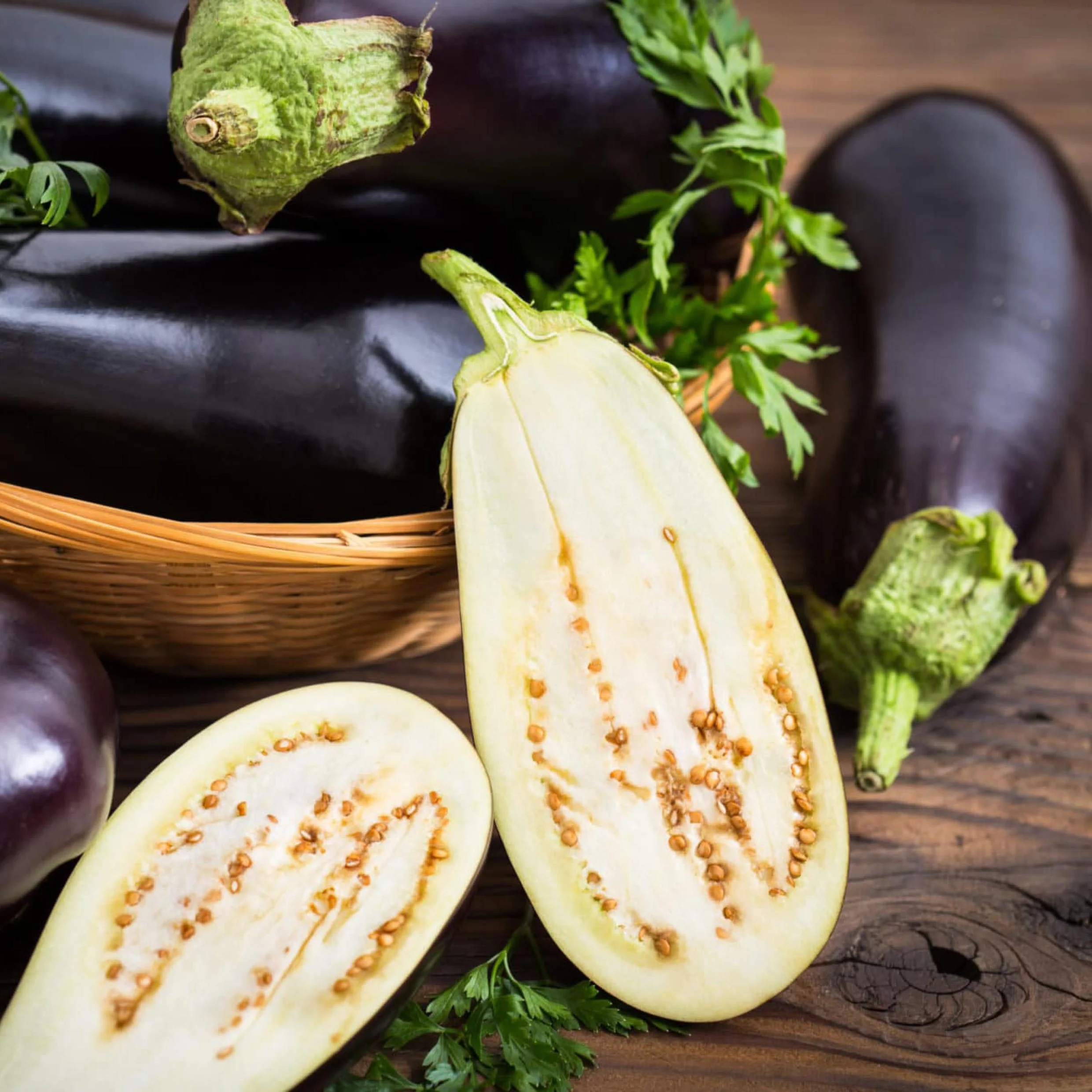 That said, it responds to every cooking method with finesse - roasting, BBQing, char-grilling, and frying of course, but even steaming in the microwave transforms the watery cells in its spongy structure to reveal its smoothly pulpy and flavourful character.